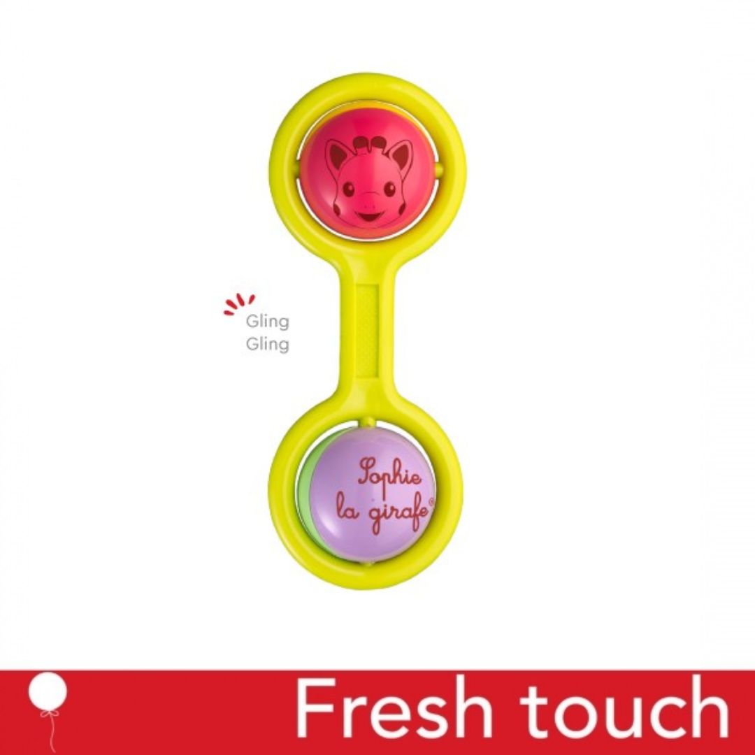 Детето Ви ще се забавлява, въртейки двете части на дръкалката. А топчетата.. в захлас ще гледа как цветовете им се преливат и как главата на Софи се върти хаотично. Дрънкалката е с лесна за хващане и с удобна дръжка, идеална за малките ръчички.