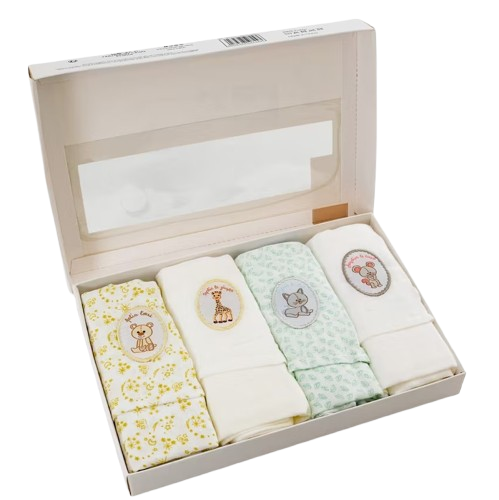 Подарете на вашето бебе първата играчка, първата дрънкалка и първата пелена – всичко в Бял комплект за новородено с Жирафчето Софи