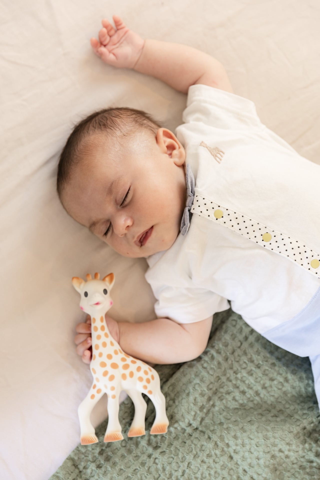 Бял комплект за новородено с Жирафчето Софи – нежност, чистота и първи сетивни преживявания