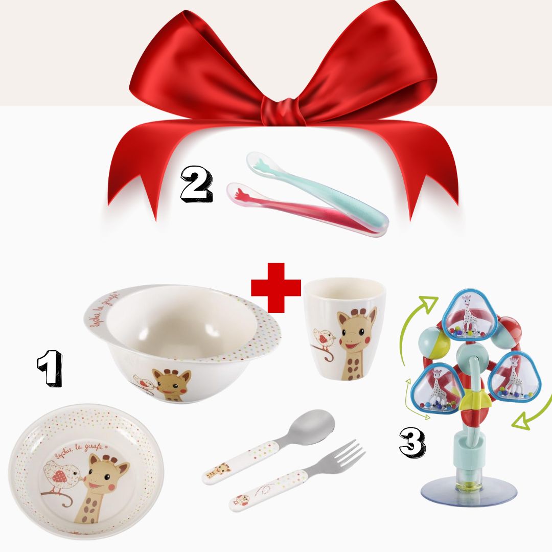 С това комбо вашето бебе ще направи плавен и забавен преход от хранене с пюре и бутилка към самостоятелно хранене с прибори. Включените продукти комбинират практичност, безопасност и забавление, като същевременно развиват фината моторика и стимулират сетивата.
