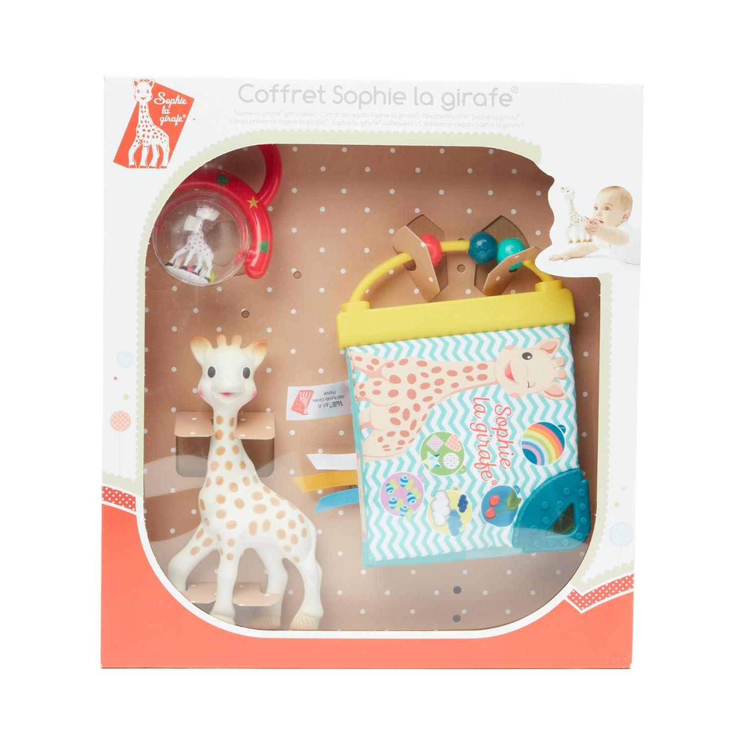 - Книжка, пълна с дейности, които ще събудят всички сетива на бебето! Бебето ще разпознае жирафа Софи и ще се забавлява, като брои елементите на всяка страница „1 дъга, 2 череши, 3 мехурчета и т.н.“.То ще открие много дейности: дръжка smetalo и 3 мъниста за движение, свирка, скрита на предната страница, различни материали за изследване, ярки и контрастни цветове, 2 меки места за дъвчене и успокояване на възпалените венци.