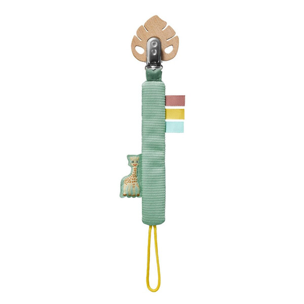 Клипсът за биберон на Жирафчето Софи е сладък и полезен помощник за всеки ден. Изработен от меки материи с ленти с различни текстури, той стимулира сетивата на бебето и осигурява приятно сензорно изживяване.