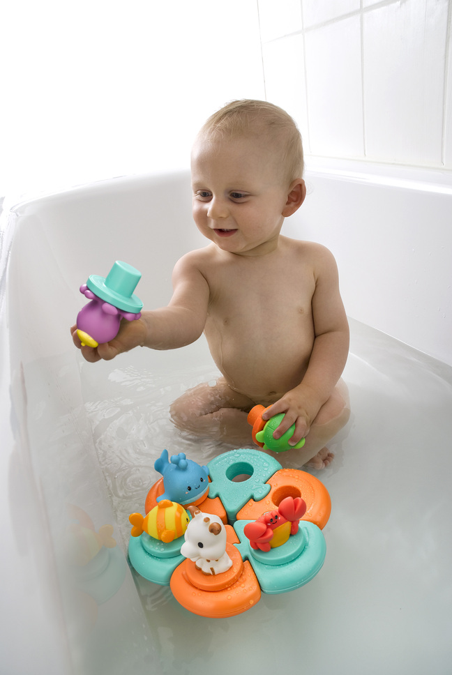 Той съчетава Splash and Surf Pyramid и обучителен пъзел за баня, за да предложи на вашето бебе часове креативна игра, сетивно стимулиране и развитие на уменията.