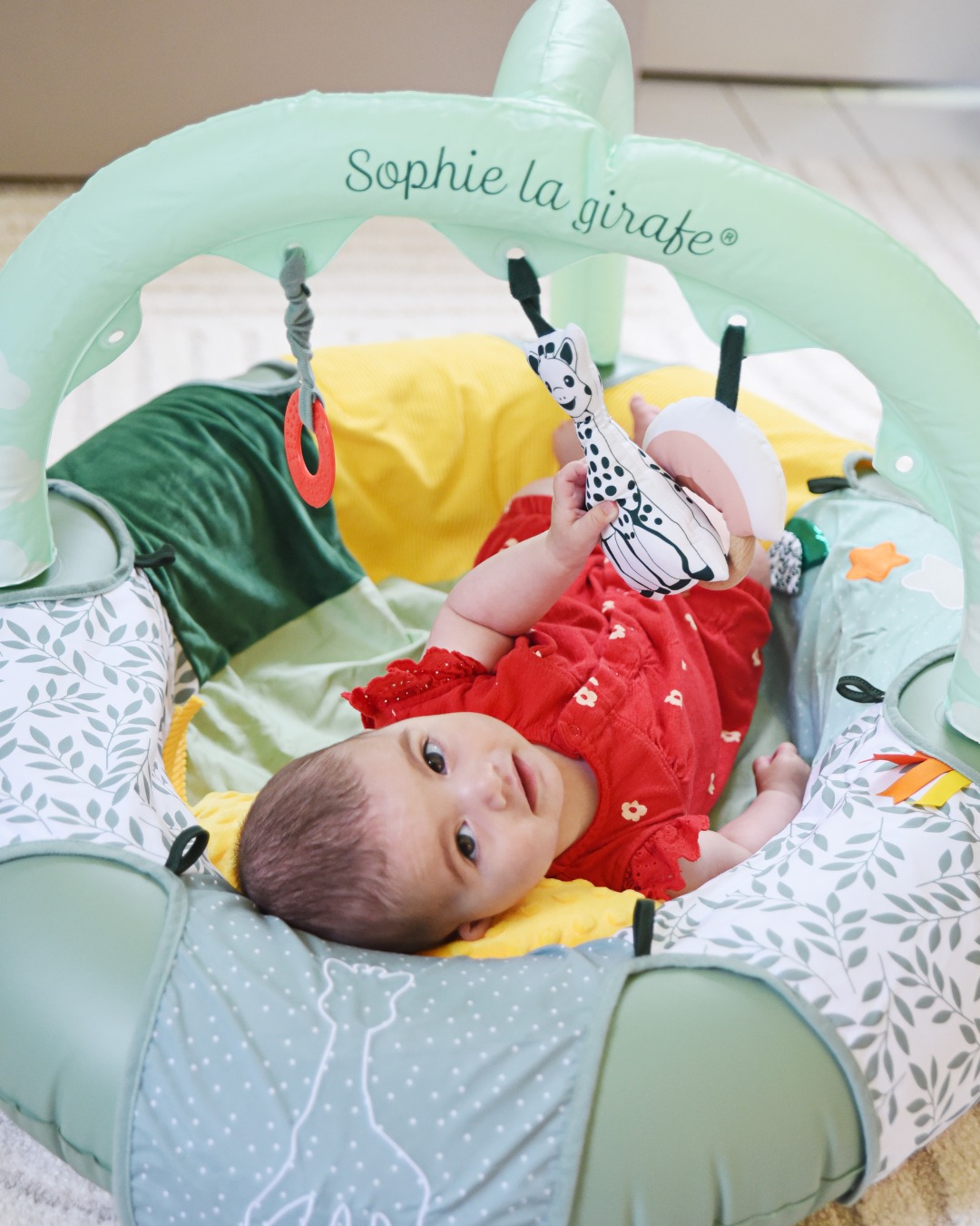 Надуваемата гимнастика на Жирафчето Софи предлага три различни начина на игра според възрастта и развитието на детето: