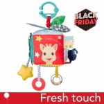 Има много текстури и различни материали, ярки и контрастни цветове, черно-бели елементи, огледало, дрънкалка, смачкана хартия, гризалка, цип, отваряща се врата, струни и още много