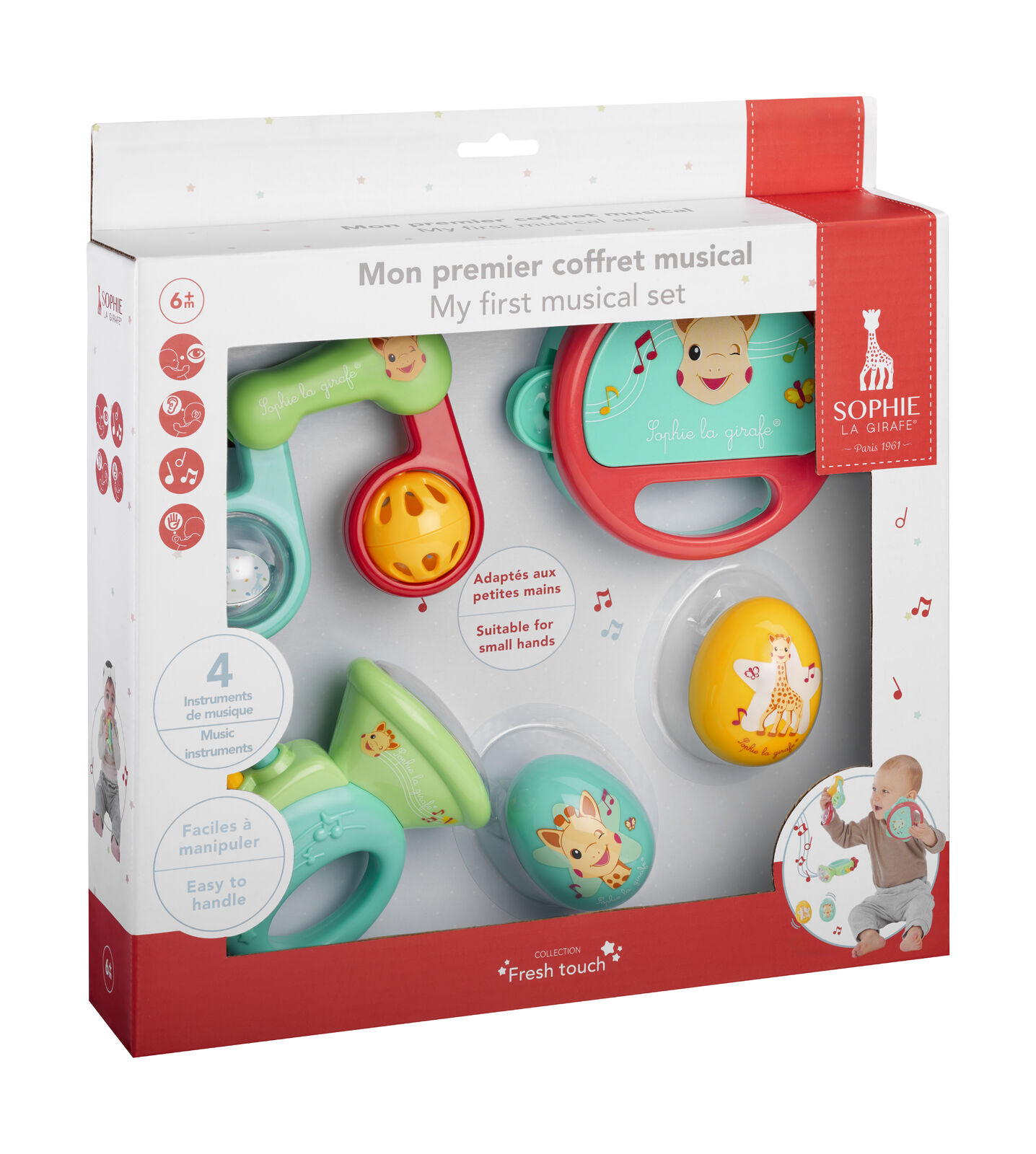 Комплектът „My First Music Set“ с жирафчето Софи е идеалният подарък, за да въведете вашето бебе в света на звуците, ритъма и творческата игра.