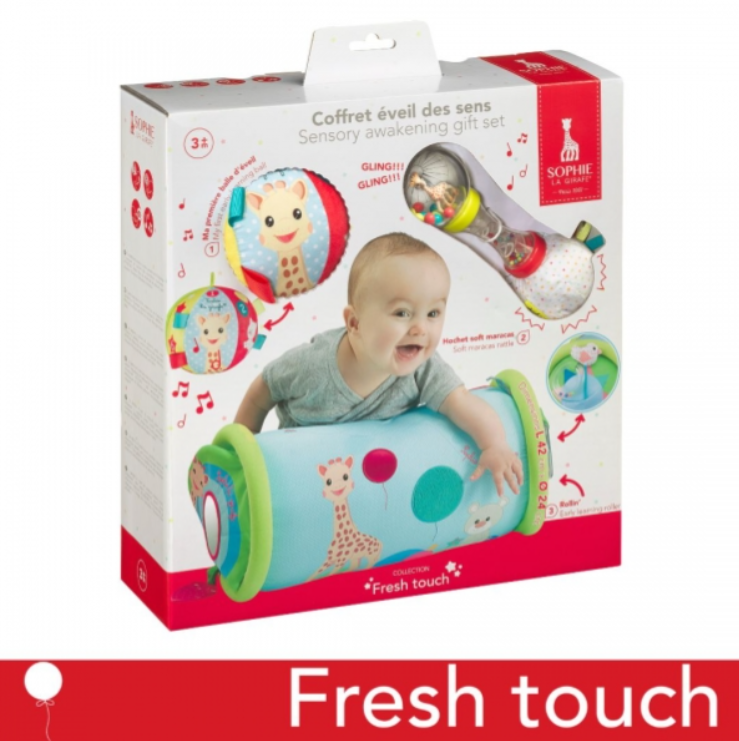 Малки и средни топки подскачат нагоре и надолу около Софи, докато бебето ви играе и разклаща любимата си дрънкалка. Другата страна е мека платнена, щумкаща топка и разбира се бебето ви няма да спре да реагира на звуците на своята играчка.
