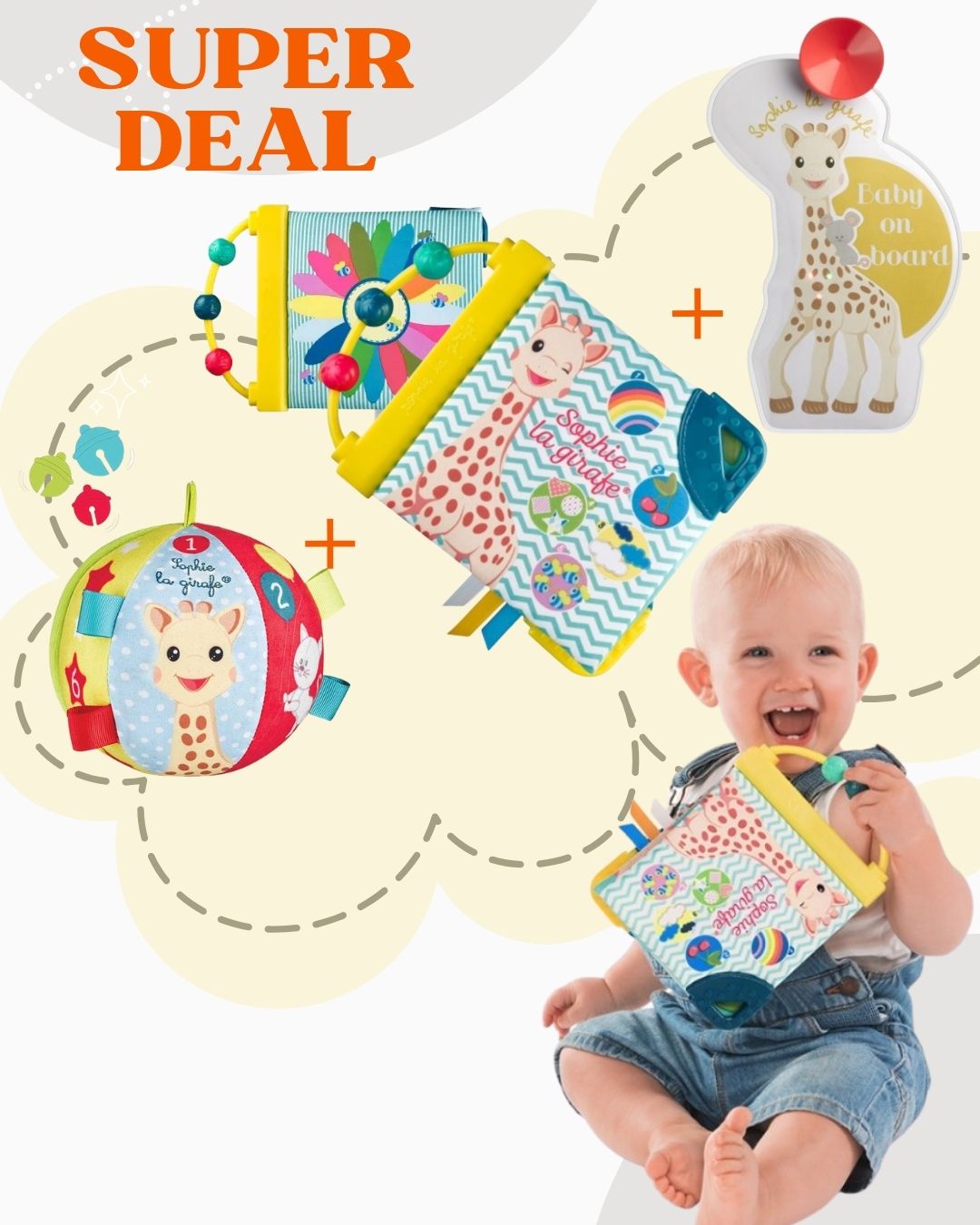 Този специално подбран бебешки комплект със Софи Жирафчето съчетава забавление, сензорно развитие и безопасност – идеален избор за първите месеци на вашето бебе или като подарък с истинска стойност.