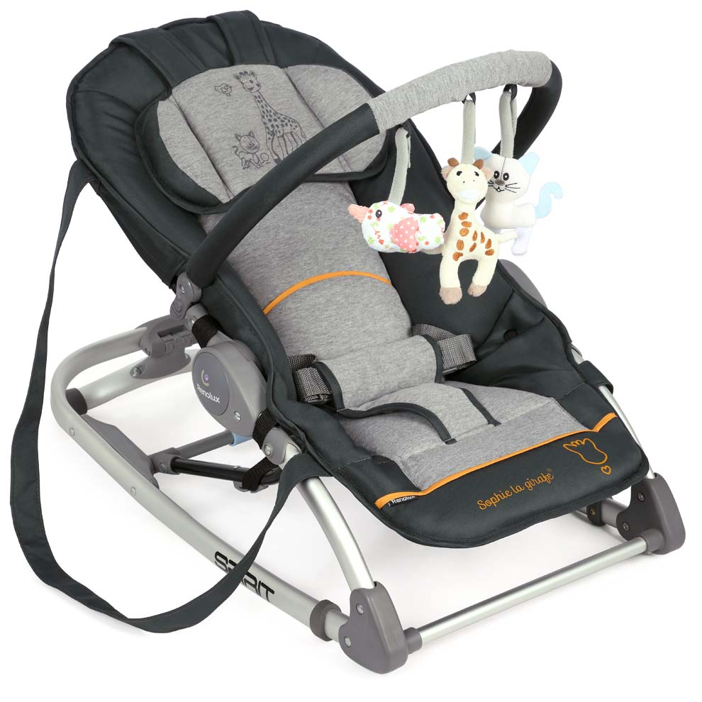 SPIRIT SUNRISE: Регулируем статичен или люлеещ се шезлонг за бебе, подходяща от раждането, с лесно накланяне и сгъване с една ръка.